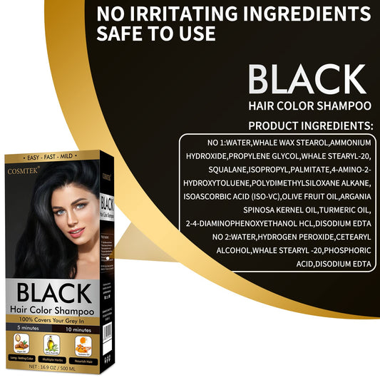 COSMTEK Black Hair Dye Shampoo Permanent for Men&Women,Hair Color Shampoo for Gray Hair Coverage and Beard,3-In-1 Shampoo for Color Treated Hair,Lasts 30 Days/500ml/Ammonia-Free/Natural herbal Ingredients.
