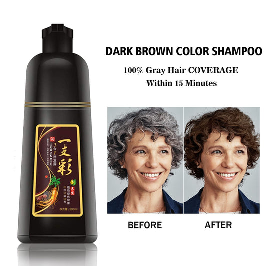 Meidu Instant Dark Brown Hair Color Shampoo for Women & men, Permanent Hair Dye Shampoo for Gray, 100% Grey Coverage, 3 in 1 Herbal Ingredients, 500ml